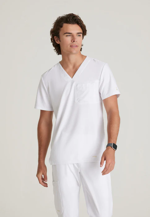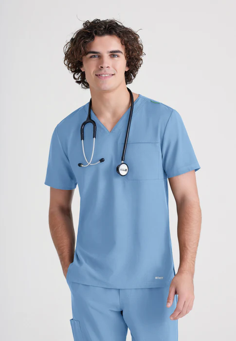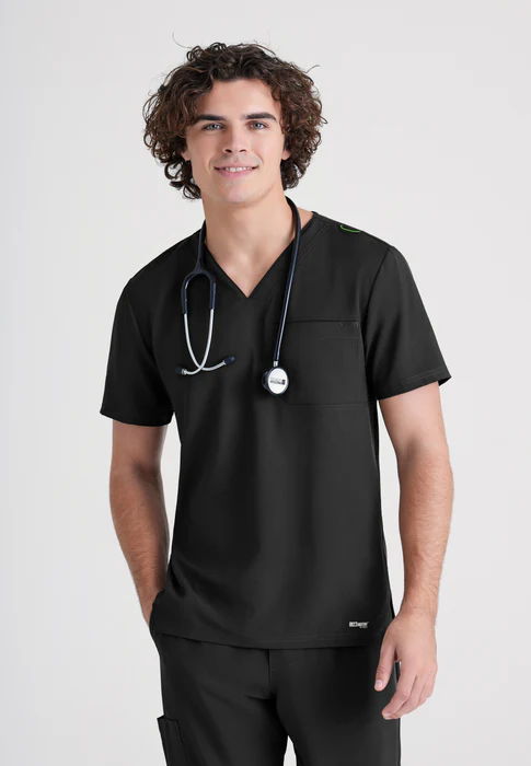Set yourself up for success with the Journey top. This contemporary top from Grey’s Anatomy™ by Barco Evolve Stretch collection can be tucked in or out. The top features 1 chest pocketed accented by the signature green badge loop. Made with recycled polyester and CiCLO® technology, the fabric is soft, stretchy, and breathable for all-day comfort.