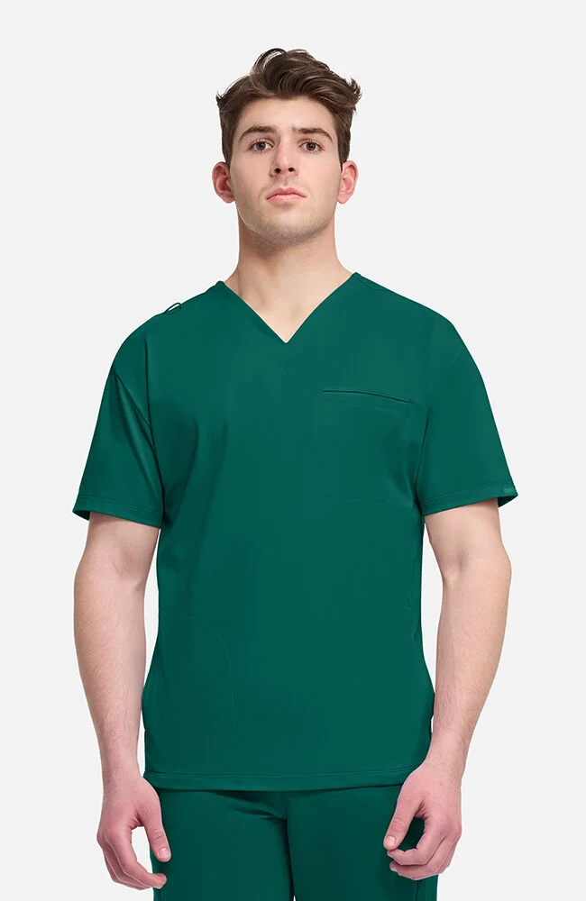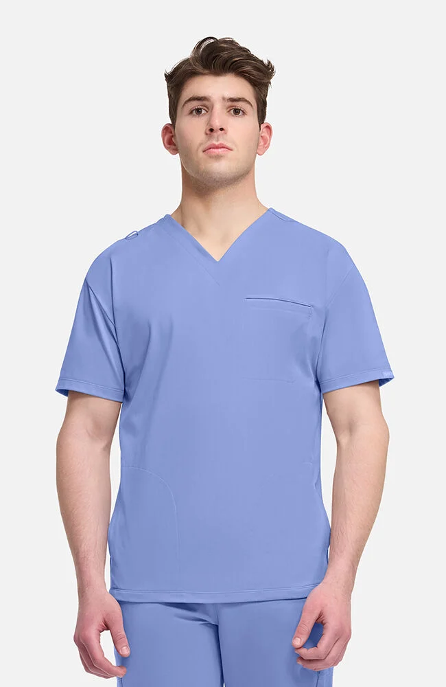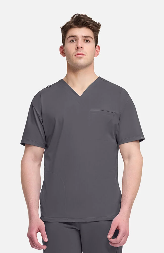 Easygoing comfort meets on-the-job performance. Made from soft and durable Comfort Pro™ knit fabric, this modern V-neck scrub top offers 360° stretch and a brushed, peached feel inside and out. A chest welt pocket, discreet side-seam pockets and a badge loop keep things practical, while the relaxed fit brings a chill, laid-back edge to your workday.