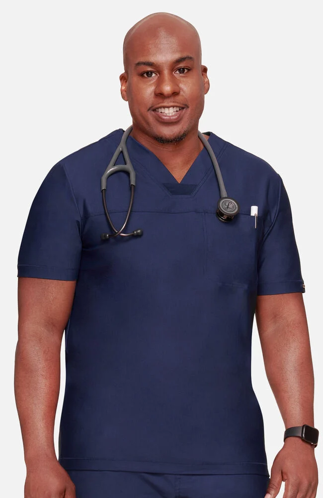 Stand out with confidence and comfort. The FORM by Cherokee Men’s V-Neck Solid Scrub Top delivers a sleek look with smart performance details, including breathable mesh panels under the arms and across the back. Finished with a subtle chest pocket and reinforced cover stitching, it’s built to handle the demands of your day.
